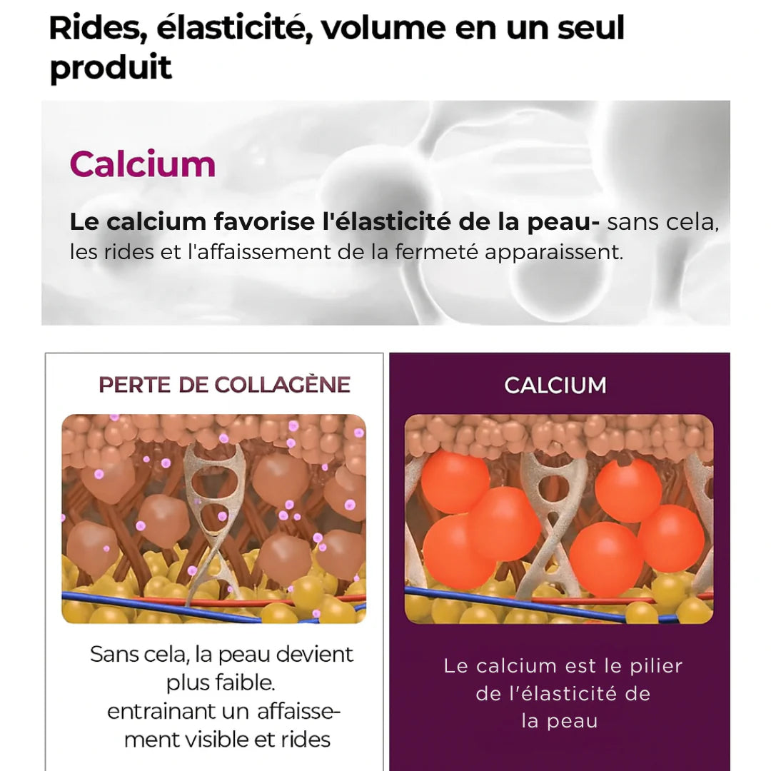 Le calcium diminue naturellement avec l'âge, ce qui fragilise directement la structure et la barrière cutanées. Conçu pour les personnes sceptiques, il agit comme un agent réparateur structurel pour redonner de la densité à la peau là où les crèmes classiques échouent.